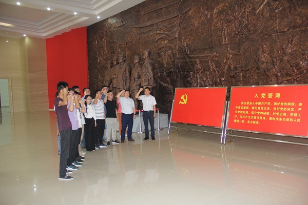 藕塘为抗日战争时期津浦路西革命根据地中心,素有“小莫斯科”之誉称,是我省首批爱国主义教育基地。在庄严肃穆的烈士陵园,全体人员首先在讲解员的带领下依次参观了藕塘纪念馆的各个展区,观看珍贵的文物、文献、照片等资料,回顾党的光辉历程,追寻英雄足迹,缅怀先烈事迹,再次被刘少奇、叶挺、罗炳辉等老一辈无产阶级革命家的壮烈事迹所感动。随后来到纪念馆大厅前,全体党员面对鲜红的党旗,重温入党誓词,进一步牢固“不忘初心、牢记使命”的政治信念。